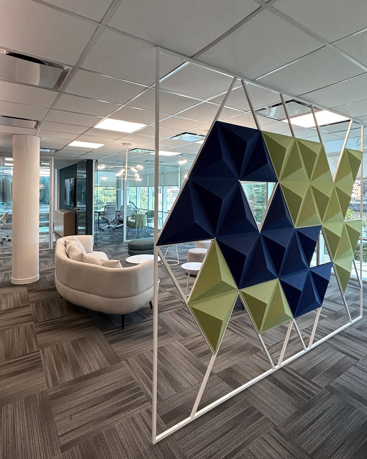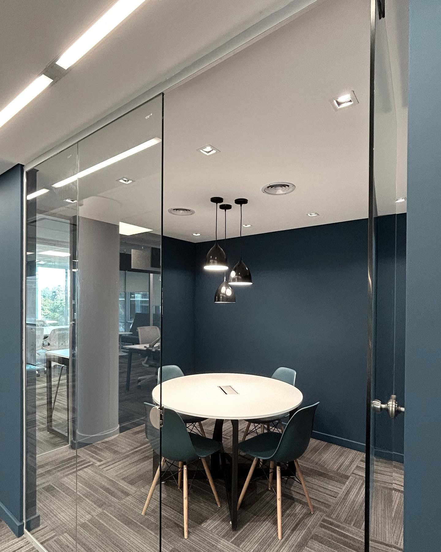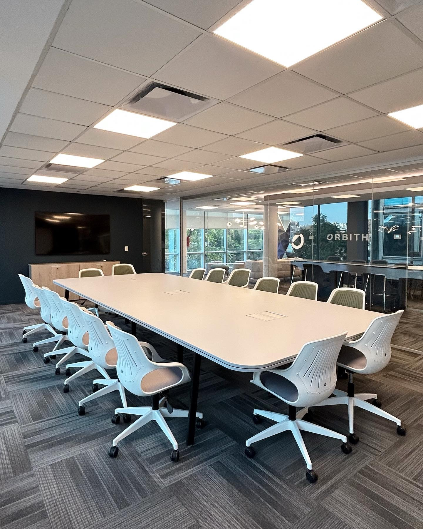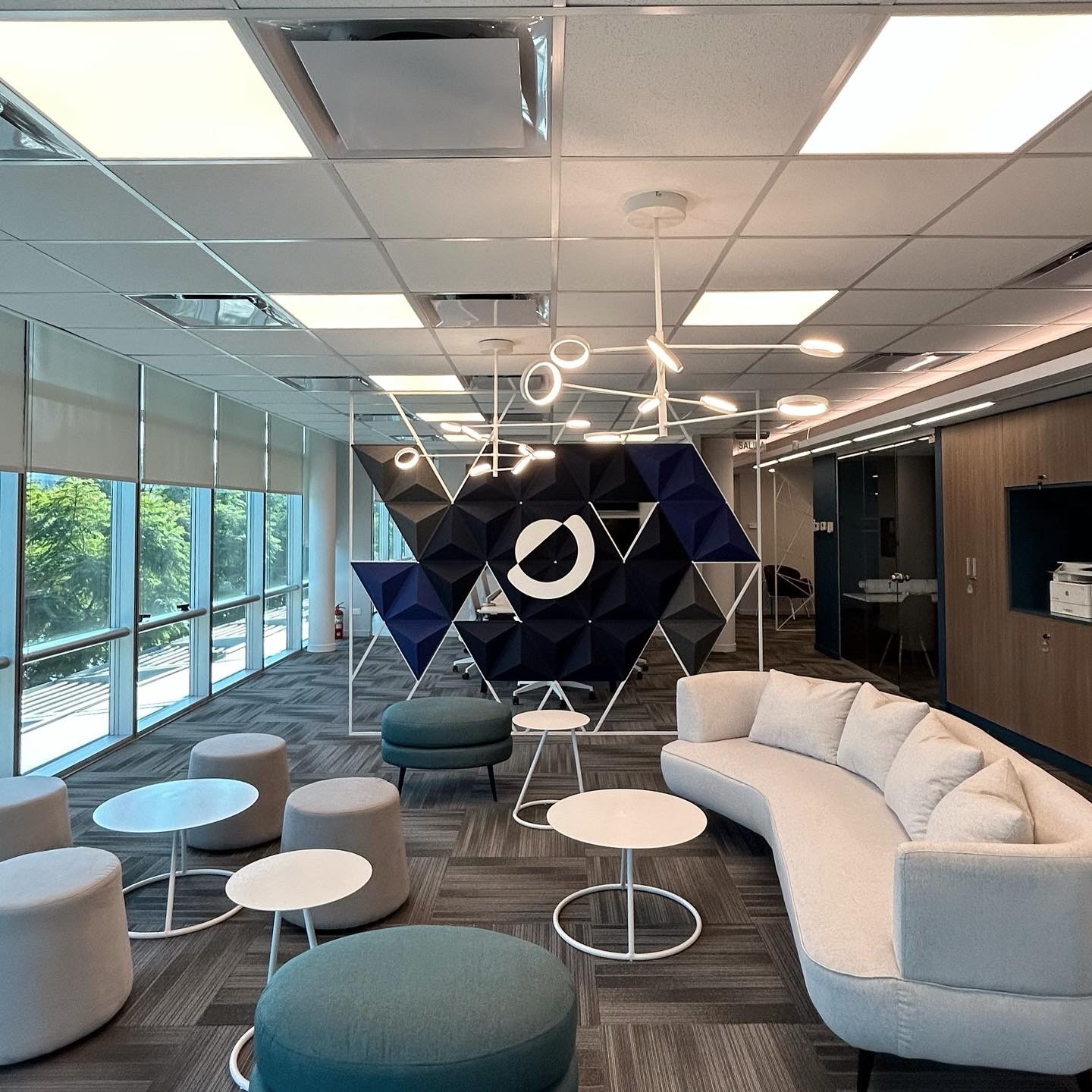 Bajo el lema "El Espacio nos Une" se generó un entorno sumamente tecnológico, transparente, con detalles modernos y con los colores corporativos como guía transversal que acompaña a todo el provecto.